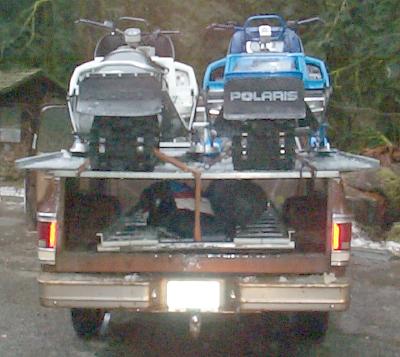 Snowmobile decks are often missing required clearance lights and reflectors. Unless the deck is less than 2.05 m wide the pickup truck lights alone are not sufficient.