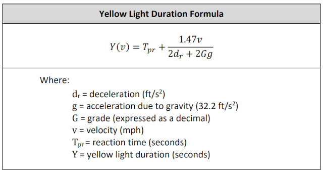 I need to know how long a yellow traffic light at an intersection should stay yellow for? I realize that the posted speed has to be taken into account and if there are advanced flashing amber lights.
